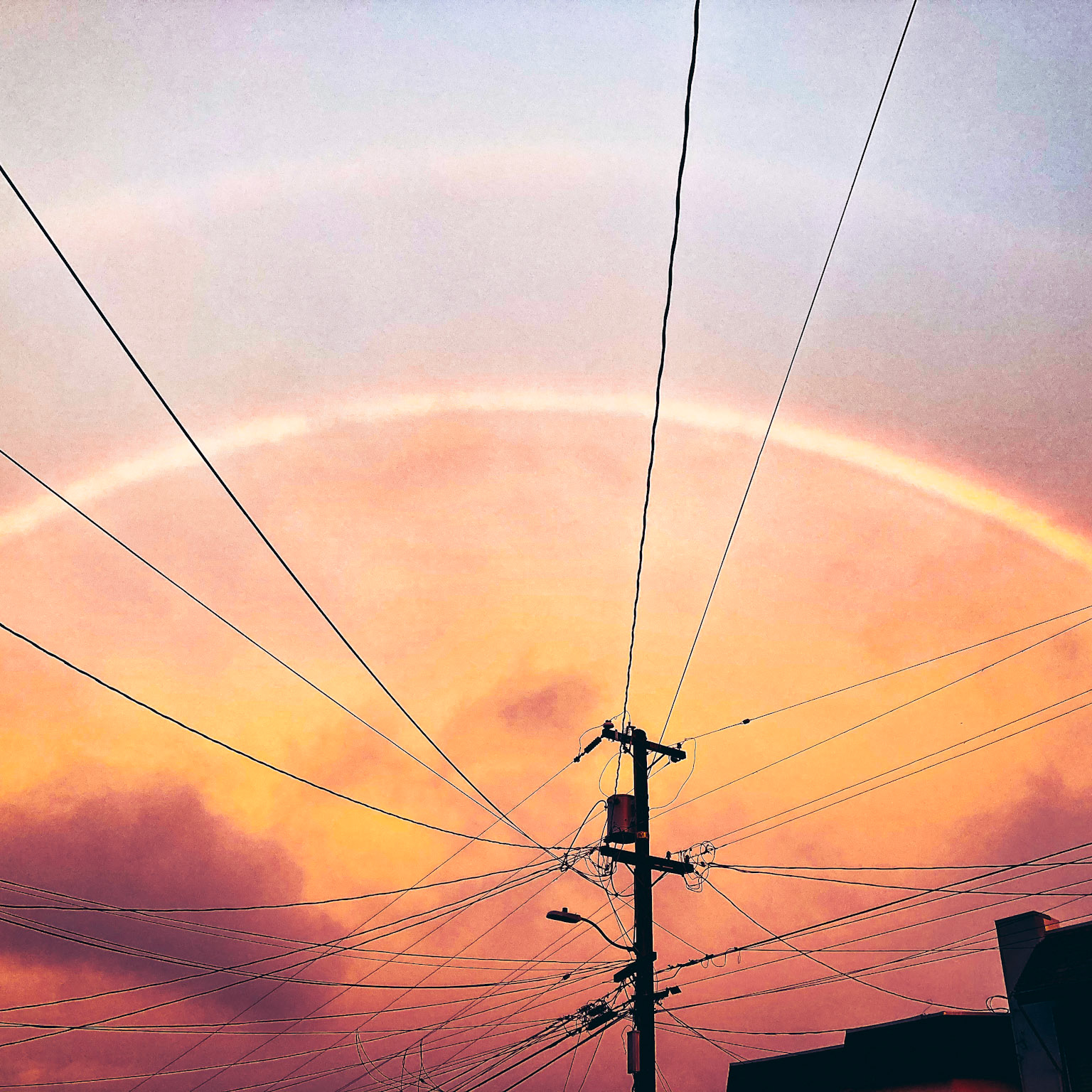 orange flowers on top of a grey wall with cloudy skies