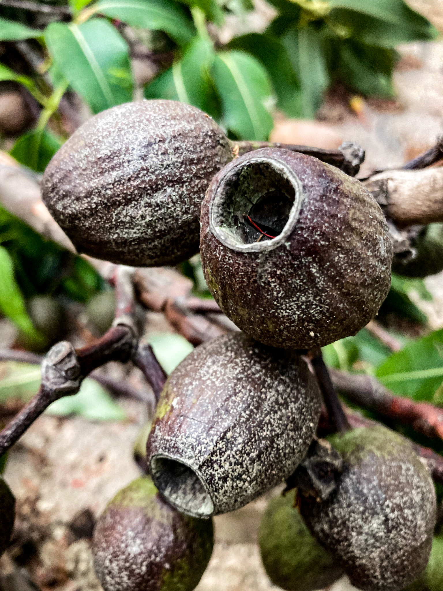 seed pod and leaves on fret gravel